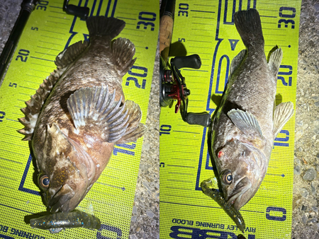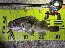 良型を狙い、5インチのワームで勝負!この日は約1時間半の釣行でハチガラ2匹、クロソイ6匹の好釣果だったとのこと