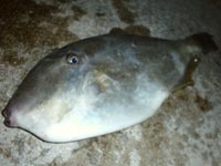その後、オイラはこんな物を発見しました!カワハギ!しかもデカイ!・・・実は目の前に見慣れない物体が泳いできてボサーと止まって居たのでタモですくっちゃいました(笑)