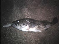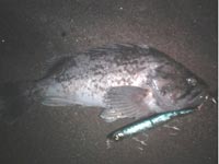や〜今回はやっちゃいました!ヒラメ、ノーフィッシュ!ヾ(・ε・。)・・・実は、かなり粘ってヒラメらしきアタリは数回ありましたがまったく乗らない状況。あきらめて今回はいつものサーフでロックフィッシュ狙いにチェンジ(笑)!・・・ 磯ロックではなく、浜ロック?サフロック??(笑)良く分かりませんが、ジグヘッドで浜ロック開始!スローリトリーブを繰り返すと、まずはソイ君一匹出ました!その後も数匹、同サイズをキャッチ。
