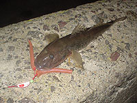"NODAちゃん"さんからデッカイ夜ハゼが釣れているとの情報を聞きつけ、早速いっしょに釣りに行ってきました。タックルは超ライトな管釣りタックルSULのロッドに3ポンドラインを巻いたリール ジグヘッドの0.9g〜1.8gやオーナ針の段差ブラクリ0.8号を使いワームはガルプのサンドワーム4インチで釣り開始! すぐさま"NODAちゃん"さんがヒット!お見事!