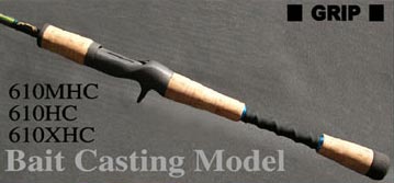 やや軽い10g前後のジグヘッドや、テキサスリグを駆使し、ボートからの接近戦や、防波堤からのキャスティングに向いたモデル。狙ったスポットへ軽快にかつ確実にソフトベイトを送り込むキャスタビリティーを兼ね備えている。 RBT610HC (ヘビークラス)