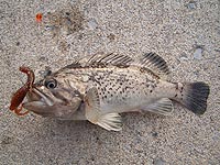 加藤さんに良いアブが釣れ内心あせりぎみで遠投してリフトフォールで攻めてみるとゴンゴンとアタリがありフッキングに成功! ブッコ抜くとソイでした! Σ(T▽T;)グワーンまたすぐにマゾイがつれました。