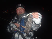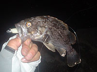 すっかり浮いてしまったソイはいくらボトムを狙っても釣れません。今度はスピニングに持ち替えてジグヘッド+パワーシャッド4インチ”ミッドナイトグロー”を投入、カーブフォールさせて着底後早めのリトリーブ、そしてカーブフォールの繰り返しでヒット!