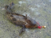 DAY1 12/8 「夜アブが釣りたいっ!!」ってことで工藤ちゃんと森漁港での釣行。 21:30頃に到着しまずは港内をスピニングでのライトテキサスで探って見ますが反応がいまいち 「ん〜渋いのか?」と思っていると横から工藤ちゃんの「HIT!」の声が!! 見るといい感じに竿が曲がってます!(柔らかめのベイトタックルだったのでバイトも弾かずやりとりはすごく楽しそうでした。) 上がってきたのは40UPのアブラコ!工藤ちゃん早速の目標達成です。 早速ベイトタックルへ持ち替えてワームも禁じ手ガルプクローへチェンジ!! スローなリフト&フォールで早速HITが・・・・・・・30UPのカジカでした。 その後バイトも無くなったので外海側へ移動したが釣れるのは20cm前後のソイばかりでした。 再び港内へもどりスピニングタックルへ持ち替えソイ狙いへ変更。数は出るものの釣れるのは やはり20cm前後、サイズアップできないままこの日は終了。