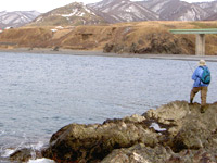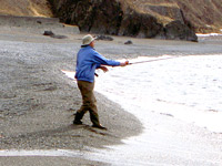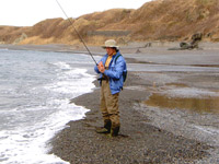 二越海岸に着くと、先行者が1人・・・「おっ!」これはこれは「小泉さんじゃないっすか〜!!」 同行して、キャスト開始!