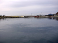ロックフィッシュ を求めて漁港に到着、 水面が鏡のようです!