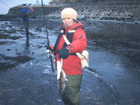 その後、しばらくするとホッケ の猛攻に合い、釣れまくり状態!・・・うちの嫁はミノー のフロントフックとテールフックにダブルで掛かってました!!