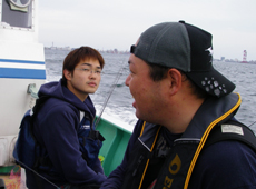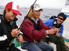 しばらく釣り方を試行錯誤していた茨城からの3人に待望の初ヒット!福田さんが一番乗りでした。もともとバスフィッシャーマンという3人