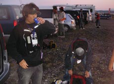 そんなムードを知ってか知らずか少佐が裸にラフト姿になり場をなごます(笑)そしてスタートフィッシングの合図と共に実釣開始!すぐにキャストする者、走り出す者さまざまだ
