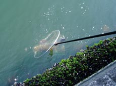 でキャストする よし!のった!でも軽い・・・あがってきたのは10cmくらいの