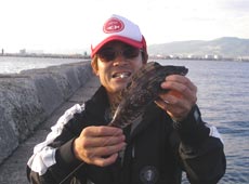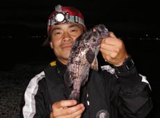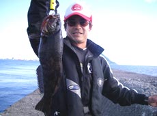 タイムが終わる」と焦りながらアブラコを狙います。写真はけいすけさんが釣った