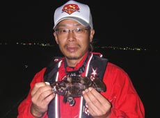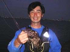前日に引き続き参加のけいすけさん、慎重にボトムを探って行きます。反応はあるがフッキングまでいたらない小さなバイトが多いようです。