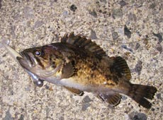 | いい加減スレてきたので、同じリグでソイ狙いに変更そして小型のソイと戯れていたら、なんと!黒メバルがHIT!!!体高があって綺麗な魚体に感動です! |