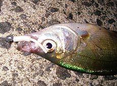 熊石方面の各河口を全て撃ちつくす予定で日本海へ向かうが峠を抜けてみると…な!なんと!Σ( ̄□ ̄;風が… おかげで波が高くてサーフでは釣りにならない様子(*_*)仕方なくというか暗いうちは漁港ででも遊ぼうと思いULタックルを手に…暇しない程度にソイが遊んでくれます(^^) NODAちゃんとtomuはタナゴをキャッチ!ヒットルアーはエコギア・ストローテールグラブです。でもおいらに来るのはソイのみ(^^)