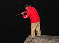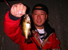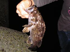 少佐にも待望のメバルが釣れました!本命のメバルにとても感動していました。僕が釣った場所と同じ所でのヒットでした、群れているようですね。ヒットワームは、エコギアのメバル職人・ストローテールグラブ2インチです。