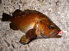 少佐2匹目のメバルです!綺麗な魚体に見とれてしまいます。ヒットワームはエコギアのメバル職人・ミノーSSでした。