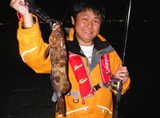 半沢さんが、遠くから魚を持って走ってくるのが見えました。近づいてくると・・・なんと!大物のアブラコじゃないですか!!婚姻色の出ているオスの黄金