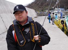 そこへ「ぼーーー」っと歩いてくる本庄さんを発見、それもそのはず!早朝はサクラマス狙いで熊石方面へ、一度帰って午後から森方面へ・・・そして「眠いの」とか言っちゃって「子供か?!」ってツッコミ入れてやりました(笑) しかも魚にもぐられた直後だったようです。