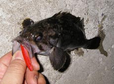 をヒットこれまた小型。本庄さんもこのサイズを数匹ヒットさせるが釣っても釣っても同じサイズの金太郎飴状態です。