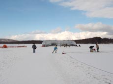 最近氷上穴釣りに興味を持ち、昼頃から行ってきやした蓴菜沼! (^O^)