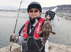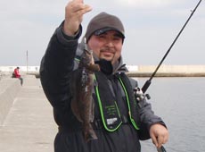 ぽかぽか陽気に誘われて森漁港へ向ったはいいが立っていられないほどの強風・・・場所を変更して釣りを開始するがスーパータフコンディション!しかしここで