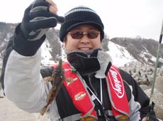 その隣で佐川さんのヒットコール!「ん?・・・小さい?」釣れたのは15cmくらいの