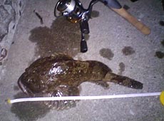 久々のマトモな釣果にヤル気も急上昇ですが、このフィールドで今夜はこれ以上の魚は釣れないだろう…そう思っていました。すると他の釣り客(以後、Aさん)が来たので、話しながら方向を変えつつキャスト&リトリーブ。やはりアタリはないので、話に熱中してしまいました。その間