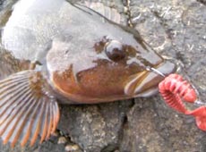 ど〜も、マキやん。です。皆様お久し鰤です(^o^)/海水温が上昇してきたようなので、朝マヅメはヒラメを狙い、日が登ってからは磯ロックってな感じで行ってきました(^O^) 朝マヅメ迄は松前方面の漁港でノリーズ・プロリグスピンにエコギア・BTS3-3/4”の組み合わせでスイミングでヒラメを狙いました… ヒットするのは、ソイばかり(ToT) でも、それなりに楽しんで朝マヅメのゴールデンタイムに本命の漁港に入りました。 手っ取り早く、ヒラメを釣るべと言う事で、伝家の宝刀?ガルプSW・パルスワーム4”をチョイス(^O^) 1/2ozのテキサスリグにして、ファーストキャスト…