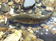 水がすごく澄んでいて、魚が見えるが・・小さい・・ とてもじゃないがルアーで釣れない。 結構3人で川を登って、なんとか自分が