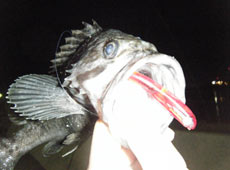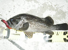 まずは、shi-zoベイトにガマカツ・ラウンド25をつけてフォールでさそってみると・・・簡単に一投で釣れました〜(^^)もちろん15cm位のクロソイ!!(笑)でもさすが!!ここのはスレテるからアピール力が強すぎるグラブなんかは反応が悪いんで、ホントびっくりしました!!(笑)