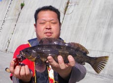 けいすけさんも合流しクロソイキャッチ!日中でもクロソイが釣れる面白いポイントです。
