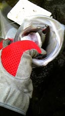 アルミカタクチをセットしキャストしました!そして、潮目脇をなぞる様にトレースさせ、ほんのちょっとだけストップさせて再び巻き始めたと同時に、目の前5メートル程前でいきなり水柱が上がり、一気にロッドティップが引き込まれました!前日より遥かにキツイ引きに耐え、何度かラインを引き出されつつも約15分程ファイトしていました!その後、寄せ波に合わせてランディング成功!見るとペンシルは遥か口の奥深くにありました!長さは現場計測82センチ、重量は血抜き、札幌到着後の計測で6・3キロありました!血抜きと札幌に帰ってからビニール袋に溜まっていた水分を考えると、現場で計ってたら結構重量あったのかもしれませんね!今後は計りも持って歩く事にします!前日、ヒントをくれたお客様に感謝です!そして帰って胃袋の中を見ると、前日の