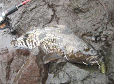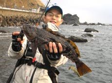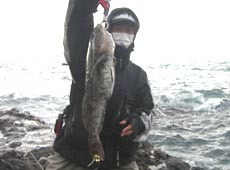 反応がなくなったので隣の磯に移動すると2投目で45cmくらいの