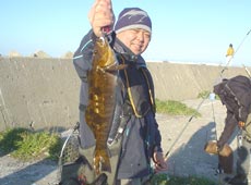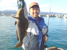 OGAちゃんにも待望のアブラコ(アイナメ)がヒット これで私だけ釣れてない・・・みんなからプレッシャーが(笑)