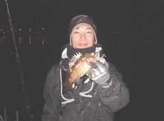 そろそろ終了かな・・・と話しているとOGAちゃんにアブラコ(アイナメ)がヒット!ライトリグ修行中のOGAちゃんもだんだんコツがつかめて来たようです。ここでアブラコ(アイナメ)釣行は終了。
