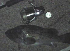 今度は外海側に移動。 潮の流れが速いのでエコギア3Dジグヘッド14g+ガルプ!・ジギンググラブをセットしフルキャスト! 底をとってからスローリトリーブしジャーク2連発後ヒット!またまたロッドが激曲がり!その後、ハチガラ(オウゴンムラソイ)もゲット! 満足の釣果で本日は終了。