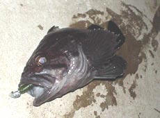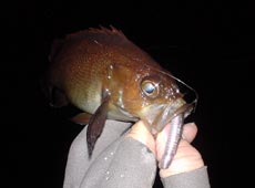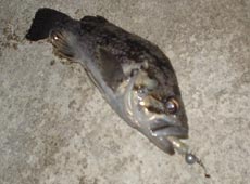 で底をゆっくり探ると「コン・・」とあたりが!リールのハンドルを回して巻き合わせ!「グ〜〜ン」と一匹目とは違う重量感!これはちょといいサイズかも!とあがってきたのは