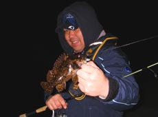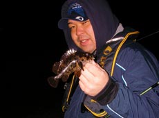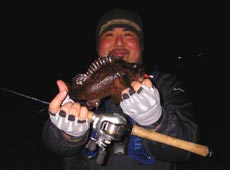 その後なんとか私も1匹釣りましたがスケルゾイなのですぐにリリース(笑)・・・ このあと突然吹雪となり終了しました。ナマコ君、けいすけさんお疲れ様でした。夜釣りはまだちょっと寒いですが、函館港にも春が近づいているようです。ハチガラ狙いのご近所ロック!オススメです。