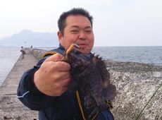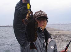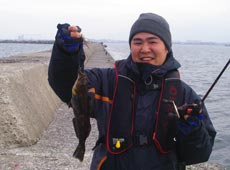 沖防波堤初釣行の斉藤さんも