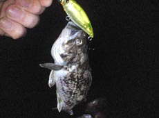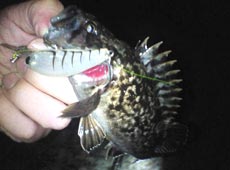 とりあえずエバーグリーン・タイニープレデターを使って底に軽く触れたら止めて探りをいれてみると一投目でヒット!なかなか幸先のいいスタートです。その後も同じエリアで軌道をわずかに変えながら探るとサイズはともかくとして釣れ続くのでかなりいけそうな様子。