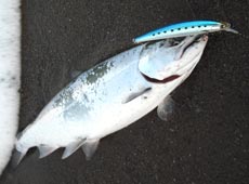 お昼近くべた凪のホームのサーフに移動。ウェダー履くのがめんどくさい自分はスニーカーでサーフをランガン。しばらく撃って雰囲気なしと思い折り返したところでメタルジグが強制ストップ。水面がギラつく。ホームでもあっさり咲いて本日の釣行終了。その後年末年始の大荒大雪に見舞われ、ホームで撃てるチャンスは新年の5日まで待たねばならないことに。