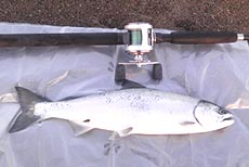 早朝5時、サーフに入釣。河口付近にはたくさんのアングラーが並びサクラマスを狙っていました。少し場所をずらし釣り開始!ランガンしながら狙うこと1時間。ミノーのミディアムリトリーブで「ガツン!」とヒット!47cmのサクラマスをキャッチ!
