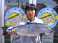 早朝5時、目的のポイントで狙うも反応が無し。場所移動して狙うこと1時間半、待望のヒット!!フッキングと同時に魚は強烈なダッシュ!近くに寄せてはまた走られるというようなやりとりがしばらく続き・・・何とかランディング成功!65cm3.6kgの大物サクラマスキャッチ!!今期5本目にして初の60アップ!大満足の釣行でした。