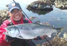 後志爆釣連合会のゆいパパです。今回は島牧入りしましたがっ………魚薄いのか…自分には厳しいっす、島牧(涙)ならば〜イキなり北上〜(朝7時島牧撤収〜早っ)んで寿都は岩場に到着!貸し切りっす(笑)さっそく撃ちまくり!デュオ・プレスベイトカムイ鮭稚魚で35センチ〜40センチの雨鱒2連発〜!ボンズ回避(笑)後はぷっちょな姫を出す!