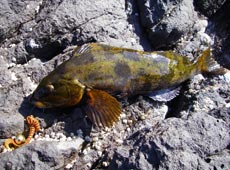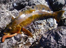 その後はミスフッキングの連発で苦戦・・・。フックサイズを#3/0に大きくし再度チャレンジするとヒット!さっきと同じ40cmのアブラコ(アイナメ)。