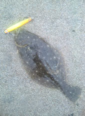 ヒラメ狙い初日!1stエントリーを目指して釣行したけど、おいらのヒラメ開幕はやはりソゲ(^皿^) まぁ毎年の事なんでいいんすけど… んでまたソゲ(^^) そ してソゲ(^O^) どうしてもソゲf^_^; あがいてもソゲ(-.-;) まぁボウズよりはいいんすけどね… ヒットルアーは岡クラフト・AT30インパクトオリジナルのオレンジ・ゴールド!