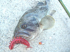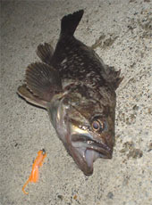 続いて2キャスト目、底まで沈めるとすぐさまバイト!今度はソイがヒット!ボトムまで落とすと日中にもかかわらず、ソイ、ガヤが高反応でした。