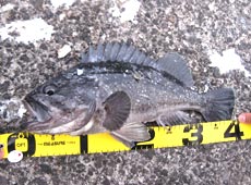 気をとりなおして、また内側を攻めるも、根に入られて糸を切られたり、ガヤにやられたり(良型のガヤが出ましたが)で、全く釣れず…。その間にしょーごさんはバシバシとエコギア・イワシヘッド11gにエコギア・パワーシャッド4”115のスイミングで40アップの良型アブ(アイナメ)を連発。