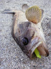 けいすけさんは3.5gジグヘッド+T -ボーン3インチの組み合わせでソイキャッチ!