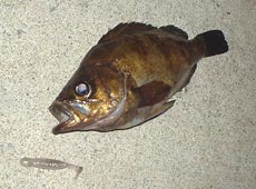 さっそくなかじー君にメバルがヒット!ヒットルアーはエコギア・メバル職人・ミノーSS